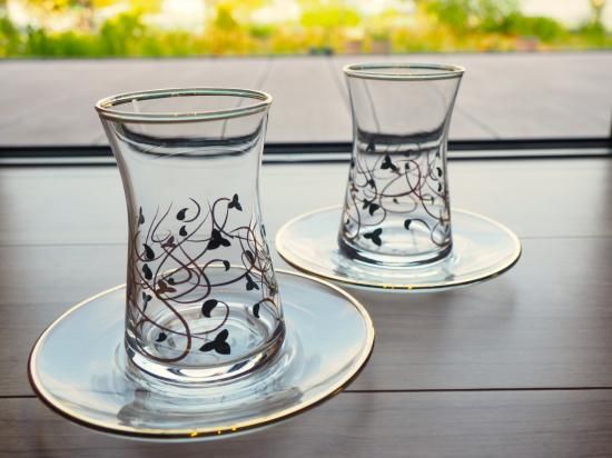 トルコの高品質なガラス製で、グラスとグラスソーサーのセット。